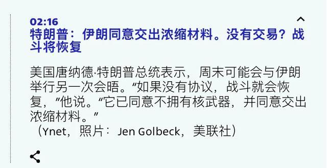 4月16日,特朗普说,伊朗东说念主开心交出浓缩铀,但没给出任何具体信息。